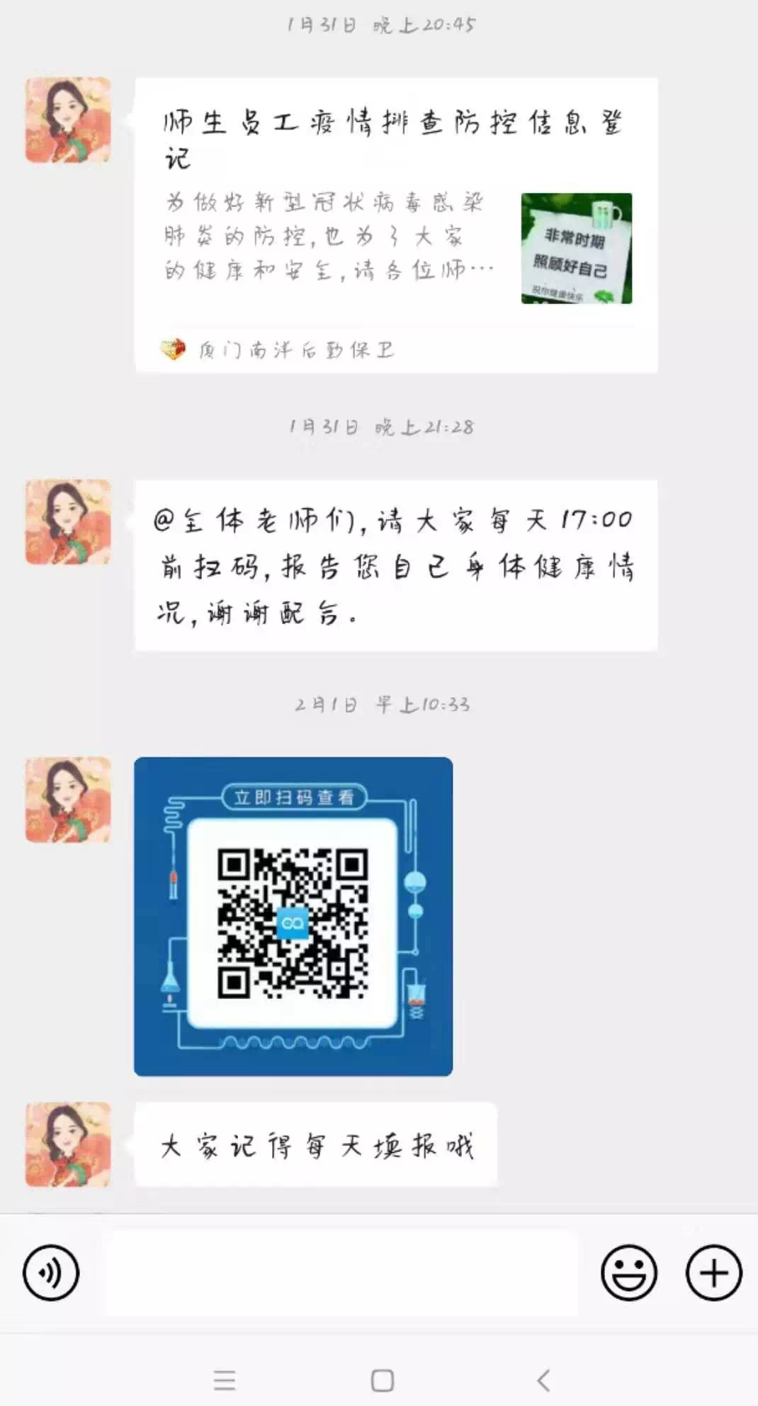 严密组织部署 细化防控措施。在落实疫情防控工作上,校领导坚持守好“责任田”,护好“一校人”。一是校领导率先垂范靠前指挥,坚定战疫决心。董事长、校长鲁加升在疫情防控的严峻考验面前,坚守岗位,深入一线,全面落实联防联控措施,构筑群防群治严密防线。在巡视排查中,及时发现学校一名湖北籍教师提前返校,立即部署后勤保卫处对其进行隔离,深入了解其近期每一个具体行程详尽记录,同时将相关情况上报市教育局,送米送菜细致入微安排好隔离生活,同时要求其务必积极配合做好体温检测、消毒工作,防微杜渐,最大限度为师生健康保驾护航。二是建立信息反馈机制,强化人员管理。积极配合省教育厅及市教育局防疫工作,制定“师生员工疫情每日排查防控信息登记表”,逐日统计寒假期间全体师生出入湖北省、所处地区疫情、感冒发热等情况,同步向上级相关部门汇报。三是利用线上宣传载体,引导师生正确防疫。宣传科通过官网、微信公众号、工作群等渠道普及防范疫情相关科普知识,并推送国家、省关于疫情防控最新资讯,引导师生重视疫情、了解疫情,增强自我防护的能力。四是筑牢校园安全防线,实行人员管控。为进一步保障师生员工健康安全以及校园教室、公寓、食堂、运动场馆、图书馆、活动中心、卫生间等场所的清洁卫生,后勤保卫处全员无休加大环境卫生整治力度,每天对校园重点区域进行彻底消毒,做到日常通风换气,保持室内空气流通,最大程度地降低师生员工感染风险。此外,学校还加强门卫管理,切断外来传染病源。限制外来车辆、校外人员进入校园,做好每日来访人员的管理和登记,建立信息台账。训练有素的门卫对所有入校人员进行严格检查,体温正常并正确佩戴口罩方可进入。五是开通疫情心理援助,在线守护情绪。面对疫情造成的恐慌和压力,学校心理健康教育中心通过QQ心理支持在线服务,使用音频对话、实时文字对话、网络留言等多种方式开通在线心理援助,给予同学们关心安慰、心理疏导和必要的应急援助。对湖北籍学生及其他有需求的学生更是关爱有加,辅导员逐一电话慰问稳定情绪,暖心提示做好防护,关注心理状态,引导学生保持乐观健康的心态,安排好居家学习生活。自学校的关爱温暖着冬日里每位学子,信心百倍共渡难关。