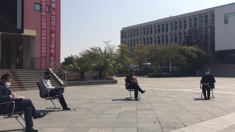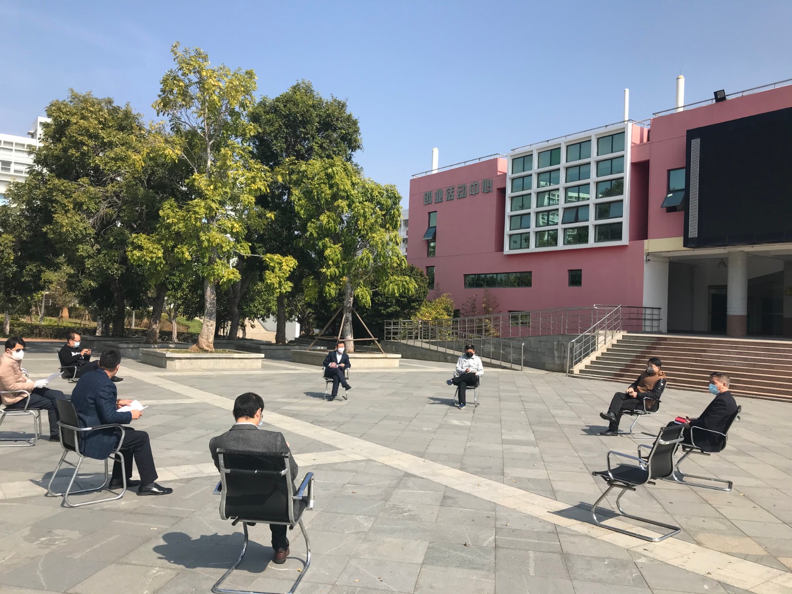 “会议室空间较为狭小闭塞,尤其在当前疫情防控的严峻形势下,将会议场地由室内转到室外,来一场‘阳光下的会议’,能尽量避免因开会人员聚集可能造成的风险。”鲁加升校长说道。