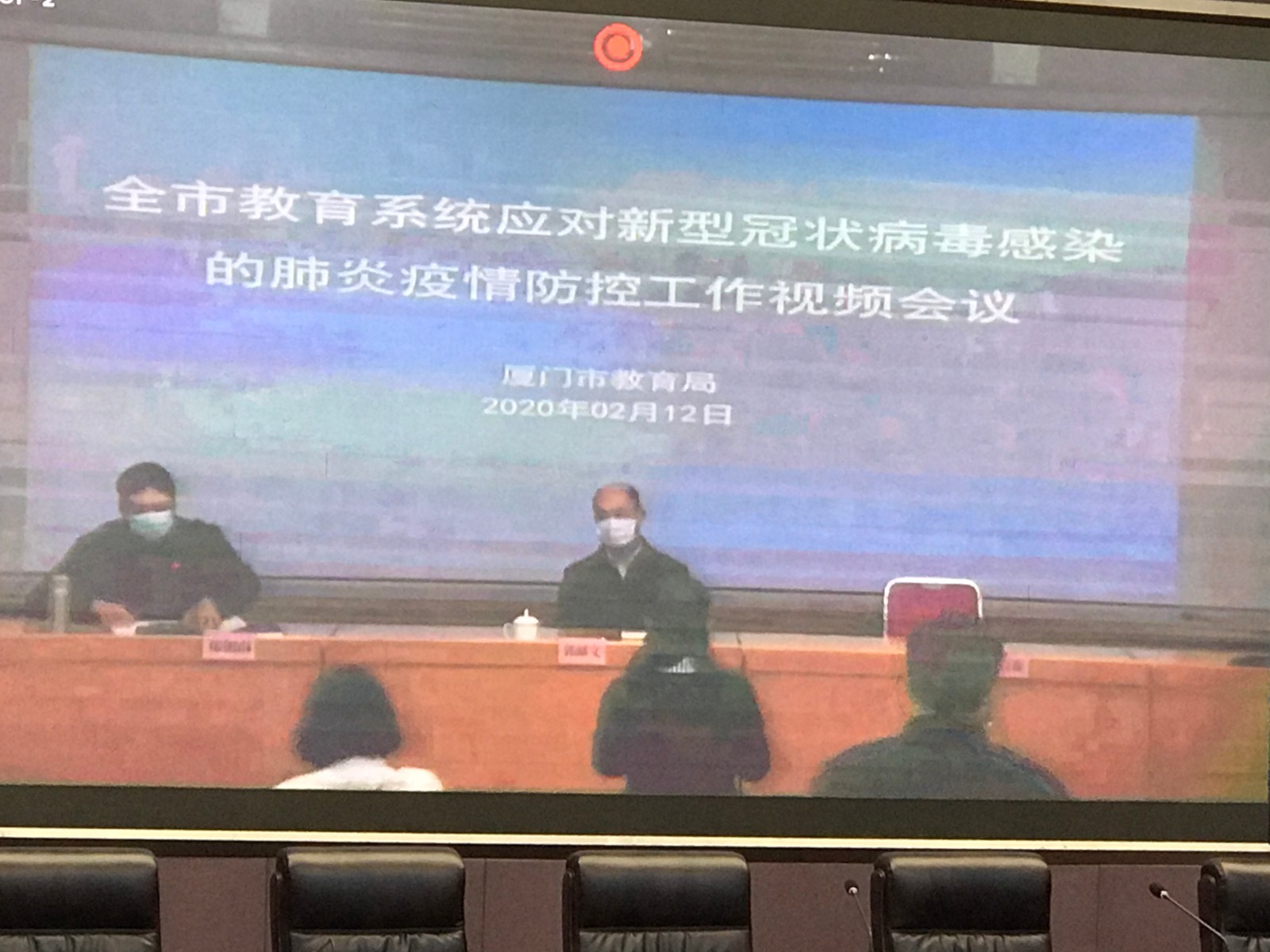 南洋社讯 今日(2月12日)下午,厦门市教育局召开全市教育系统应对新型冠状病毒感染的肺炎疫情防控工作视频会议,我校在仙岳报告厅设分会场,董事长、校长鲁加升,党委书记施水成,副校长何卫华和各职能部门负责人参加会议。