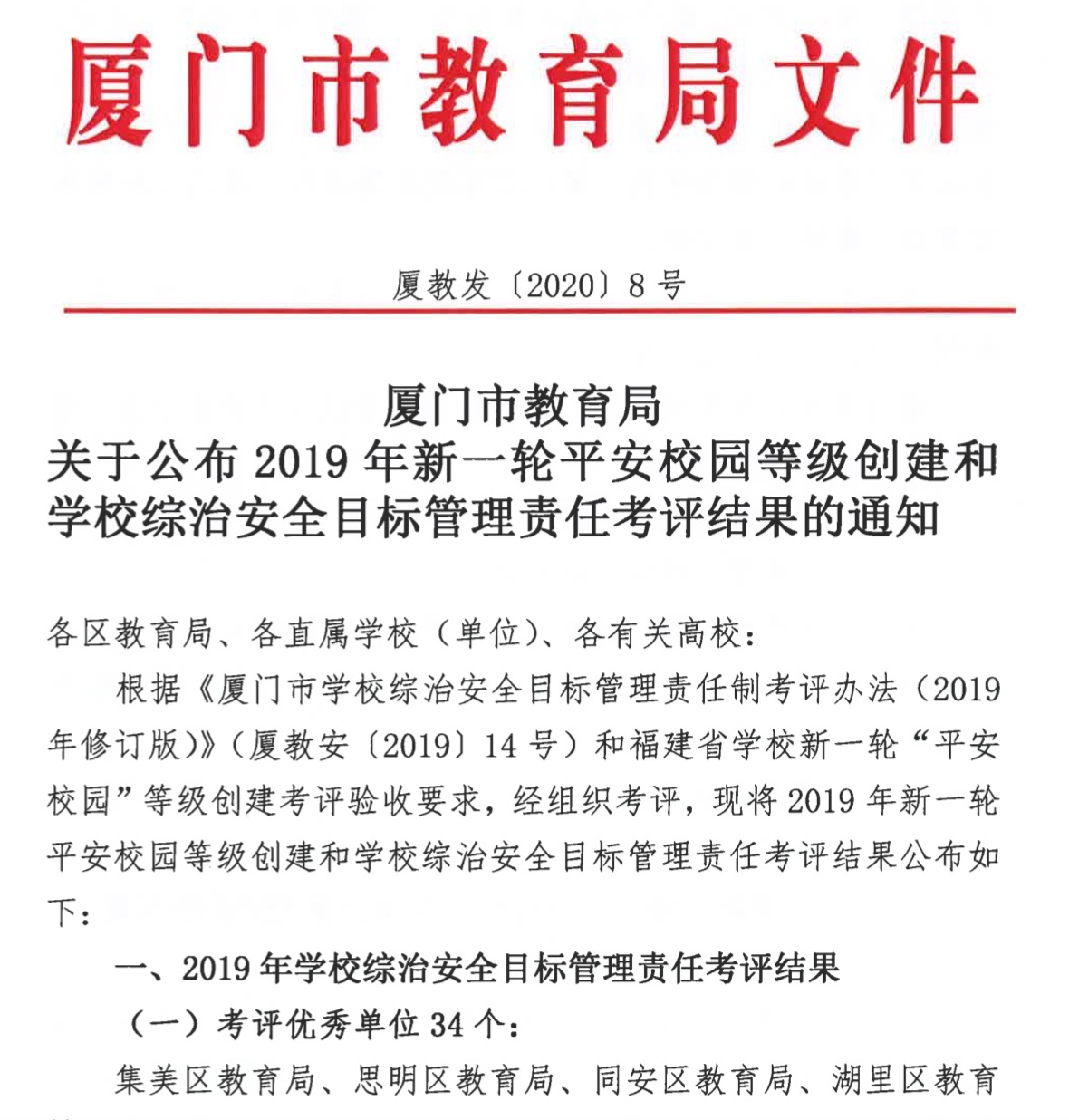 接到评选通知后,南洋学院即高度重视,积极申报,对申报材料严格把关,按照奖项评选标准和流程中的时间节点填写和报送材料。经过严格评审,共评选出34个单位为“厦门市2019年学校综治安全目标管理责任考评优秀单位”,27个单位为“5A级平安校园”。此次荣誉的获得是对南洋学院近年来综合治理工作的充分肯定。