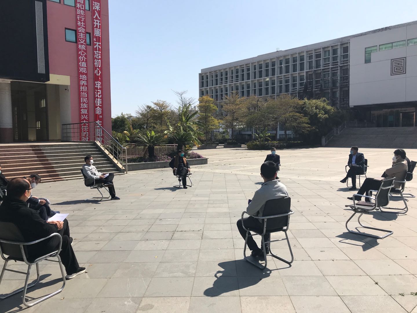 施水成书记强调,在疫情防控期间,相关职能部门要进一步提高认识,充分认清疫情防控工作的重要性,以高度的政治责任感主动承担工作责任,确保学校的各项工作任务不留死角,没有遗漏;学生在开学之前不得提前返校的要求,必须反复重申;各部门之间要进一步加强沟通协调,创新工作方式,形成强大合力。他要求党员领导干部要时刻保持政治清醒,不断提高政治站位,坚决扛起政治责任,坚守初心、担当使命,及时做好上级和学校政策的上传下达,下大力气把各项相关工作安排落细落小落实,全力以赴守好我们的师生、守住我们的校园。