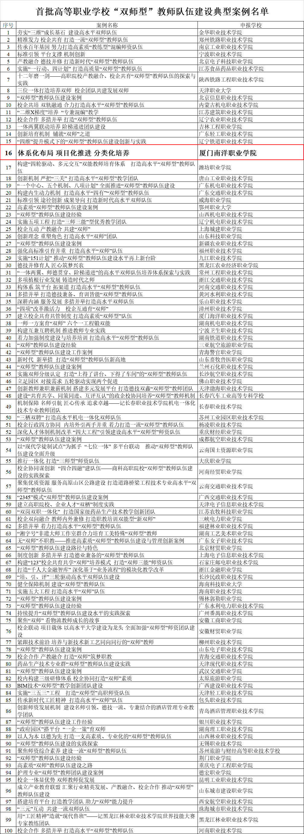 大鹏一日乘风起,南洋天天向上行。4月29日,教育部公布首批全国职业院校“双师型”教师队伍建设典型案例,tyc1286太阳成集团荣登高等职业学校百名榜单第16名,位列全国民办高职院校第一。