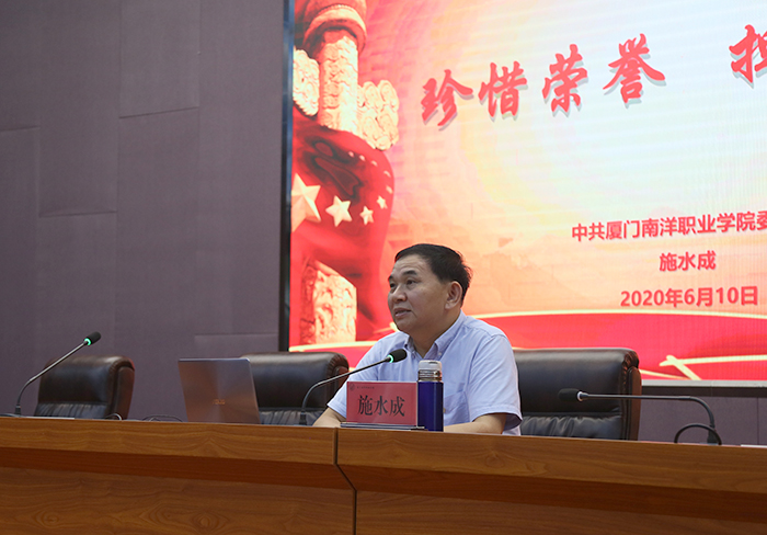 6月10日下午,厦门南洋学院党委在仙岳报告厅举行党校第37期入党积极分子暨第3期发展对象培训班开学典礼。党委书记、党校校长施水成出席会议并为全体学员讲授党校开学第一课。全体党委委员、第37期入党积极分子、本期发展对象参加会议。