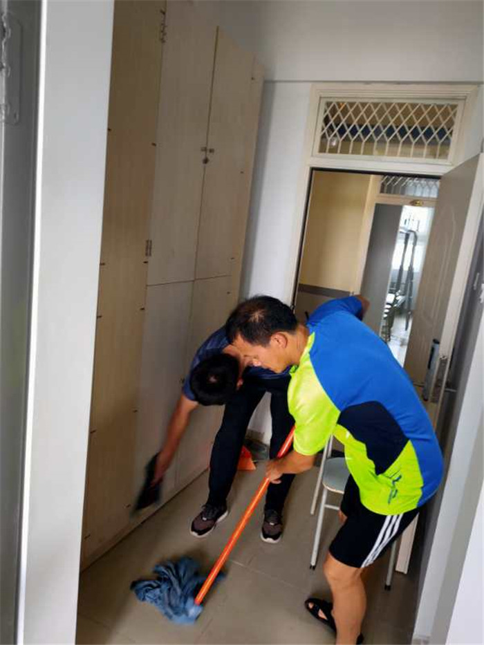 各部门按照学校的要求提前谋划、提前安排,在学生到来前夕,更是精益求精,确保万无一失。9月4日下午,蒋晓蕙院长带领经济管理学院全体教职工及部分学生干部响应学校号召,对男生宿舍4号楼进行全方位无死角的打扫,蒋院长身先士卒,她手把手的教少数不太会干活的学生,烈日炎炎,大伙儿干劲十足,老教授的言传身教令人动容。