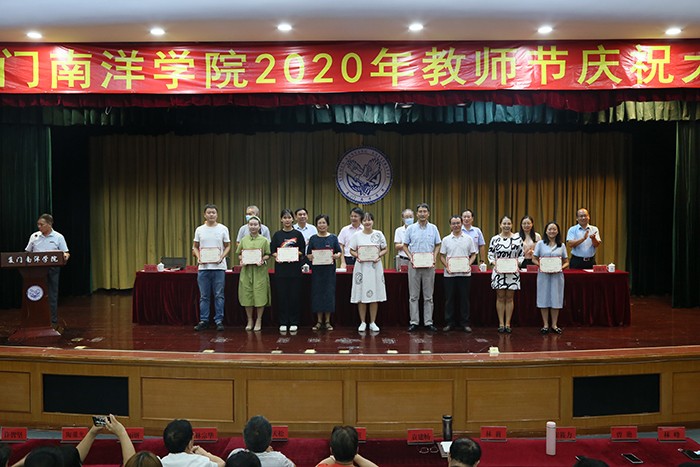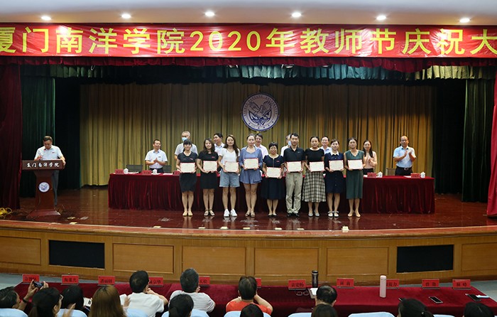 9月9日,值第36个教师节来临之际,南洋学院举行2020 年教师节庆祝大会,表彰在岗位上勤奋工作、作出突出贡献的鲁小卉、郭明瑜、王冰清等3位“最美教师”、伏柃羲等18位“优秀教师”、曾艳等21位“先进工作者”、刘艳艳等2位“师德标兵”、陈荣钏等3位“优秀辅导员”、许扬坤等5位“优秀班主任”、党政办等5个“先进集体”。