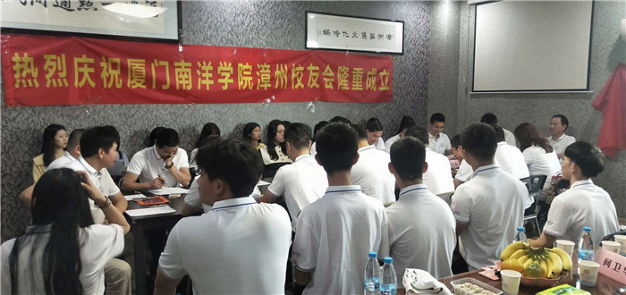 10月17日,漳州校友分会成立仪式于漳州一点通同城网公司举行。漳州分会会长林志伟、监事长黄少东、副会长曾浚英、徐艺彬、沈丽敏、许鹏玉、欧阳清圳,及田银辉,王龙鑫,韩泳超等优秀会员代表参加了会议。曾浚英副会长主持会议,我校常务副校长、会长康乃美为漳州校友会会长林志伟授分会会牌、会旗,宣告漳州校友分会正式成立!新当选漳州分会会长林志伟发表讲话,强调了校友分会建设的重要作用,介绍了漳州校友分会的具体情况,并对母校校友总会领导表示由衷的感谢!他表示,要让更多的南洋学院校友凝聚在一起、进行资源共享互助;吸纳更多的漳州校友资源,从而做大做强,让所有成员分享教育资源、人才资源;分会会长林志伟承诺将会积极开展校友会建设工作,不辜负每一位成员的支持与信任。曾浚英副会长宣布厦门南洋学院漳州分会第一届理事会正式开始,常务副校长康乃美、三创学院院长吴香珍、招生办主任蓝德森、分会会长林志伟、分会监事长黄少东、副会长曾浚英、以及秘书长蓝皆平依次致辞,致辞中表现出对校友分会的关心与支持。常务副校长康乃美首先转达鲁加升校长的谢意,对漳州校友会会长的工作态度表示肯定,希望校友会全体成员能发挥自强不息的精神,努力扩大校友会的力量。会议最后,全体与会成员演唱校歌《爱拼才会赢》,展现校友会成员勇于拼搏的开拓精神,同时对漳州校友分会未来的工作寄予无限希望……