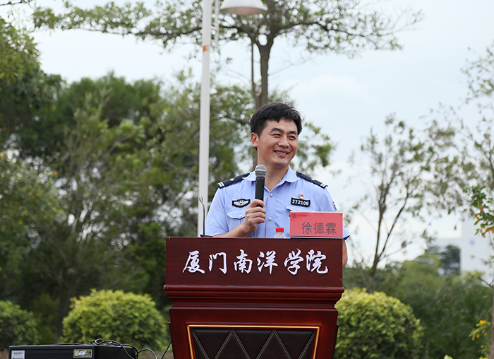 新店派出所副所长黄文德,翔安公安分局刑侦大队侵财中队指导员吕亚笃,新店派出所综合科科长范唯,新店派出所民警徐德霖,校长助理学工处长蓝德森,后勤保卫处处长章卿,后勤保卫处副处长王慧军、文教园各兄弟院校的分管校领导和保卫干部参加活动。