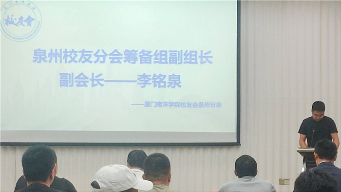 泉州校友分会筹备组副组长兼副会长李铭泉先生介绍校友分会筹备情况
