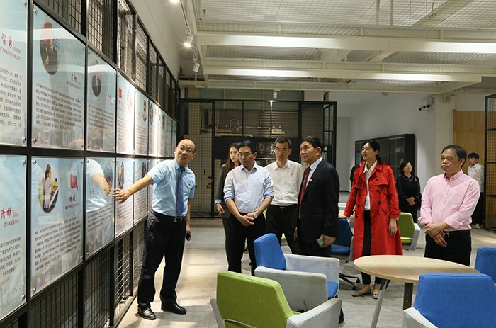 在实地考察环节,考评组专家一行前后前往特种机器人产业基地、科研实训大楼、教学楼、创业活动中心、学生宿舍、食堂、禁毒宣教室、校史馆、图书馆等地实地考察文明校园创建情况,深入了解我校办学理念、办学条件、创建氛围、阵地建设、校园文化环境建设等。