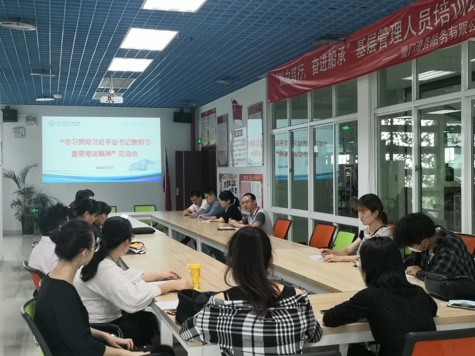 在第36个教师节到来之际,习近平总书记发表教师节重要寄语。为学习领会、贯彻落实习近平总书记重要寄语精神,加强新时代教师队伍建设,落实立德树人根本任务,2020年11月17日下午,教师发展中心围绕“学寄语,悟思想,育新人”主题开展交流会。
