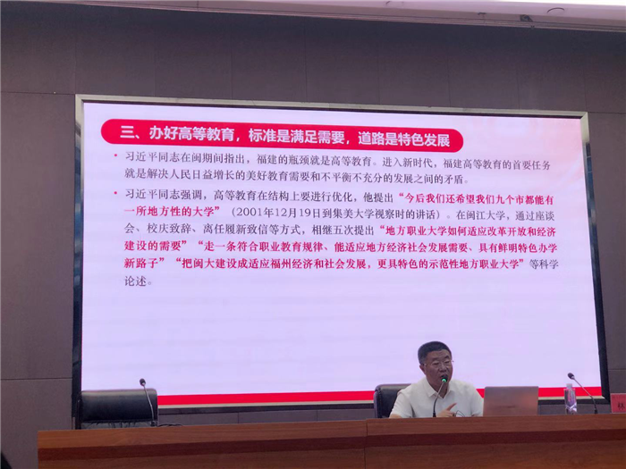 11月18日下午,我校于仙岳报告厅召开“学前教育专业建设报告会”。泉州幼儿师范高等专科学校校长林清泉教授、福建幼儿师范高等专科学校校长陈峰教授应邀作专题报告。清泉教授在“习近平总书记高等教育重要论述在福建的探索与实践”主题报告中介绍了习总书记在福建任职期间与高等教育相关的工作历程,并分七个方面阐释了在此期间习总书记关于高等教育的重要论述,帮助参会人员从宏观的角度加深了对“建设教育强国是中华民族伟大复兴的基础工程”的认识,同时也更加强了身为教师的责任感和自豪感。