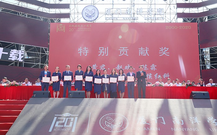 2020年11月26日,厦门南洋学院在学校田径场召开建校20周年庆祝大会。各级领导、长期关心支持南洋学院的社会各界代表、国内外高校代表、海内外校友代表和在校师生隆重集会,庆祝南洋学院建校20周年。