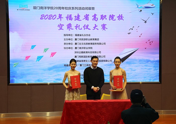 南洋社讯 昨日(11月30日)上午,由厦门市旅游职业教育集团主办的福建省高职院校空乘礼仪大赛总决赛在南洋学院举行。大赛以“展翔空英姿,竞青春风华”为主题,旨在帮助学生适应空乘岗位对良好形象与礼仪素质的要求,提高空乘专业学生就业竞争力,激发学生刻苦钻研服务技能的热情。