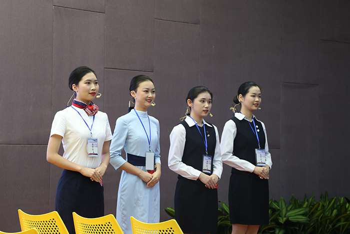 经过三个月激烈的海选,最终来自福建省7所高职院校的28位选手脱颖而出,进入总决赛进行同台比拼,尽情展现空中乘务专业学生的风采。比赛分为形象展示、理论考试、航空英语口语测试、民航乘务服务情境模拟演练(团体赛)四个环节。