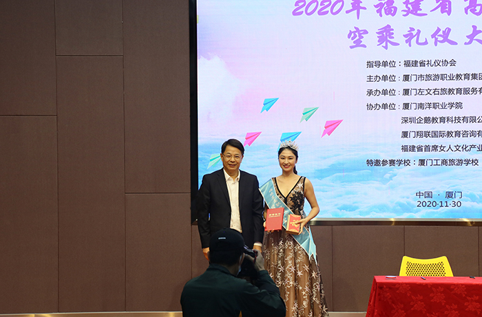 据悉,该赛事由福建省礼仪协会指导,厦门市旅游职业教育集团主办,厦门左文右旅教育服务有限公司承办,tyc1286太阳成集团、深圳企鹅教育科技有限公司、厦门翔联国际教育咨询有限公司、福建省首席女人文化产业投资有限公司联合协办。按照赛事安排及评分规则,本届大赛共设置五大奖项,包括一等奖1名,二等奖2名,三等奖2名。获奖选手不仅可以获得丰厚的现金证书和奖杯,还能获得航空公司空乘、银行综合服务、机场贵宾接待等职位直通的机会。