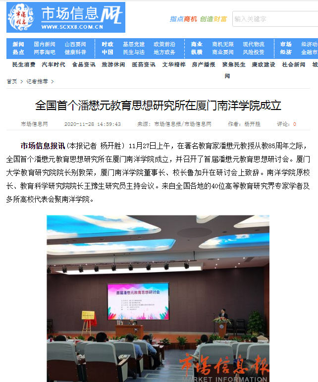 市场信息报:全国首个潘懋元教育思想研究所在厦门南洋学院成立