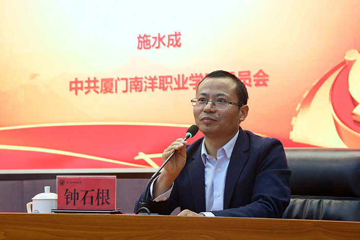 南洋社讯 为深入学习贯彻党的十九届五中全会精神,今日(12月9日)下午,我校在仙岳报告厅召开十九届五中全会精神宣讲会。党委书记施水成作宣讲报告,党委委员、副校长钟石根教授主持会议。党委委员、副董事长、副校长鲁晓芹,工会主席何卫华研究员,党委委员、校长助理兼学生工作处处长蓝德森副研究员出席会议。全校科级及以上干部、党支部书记、教研室主任、思政课教师、副教授以上职称教师及学生党员参加会议。