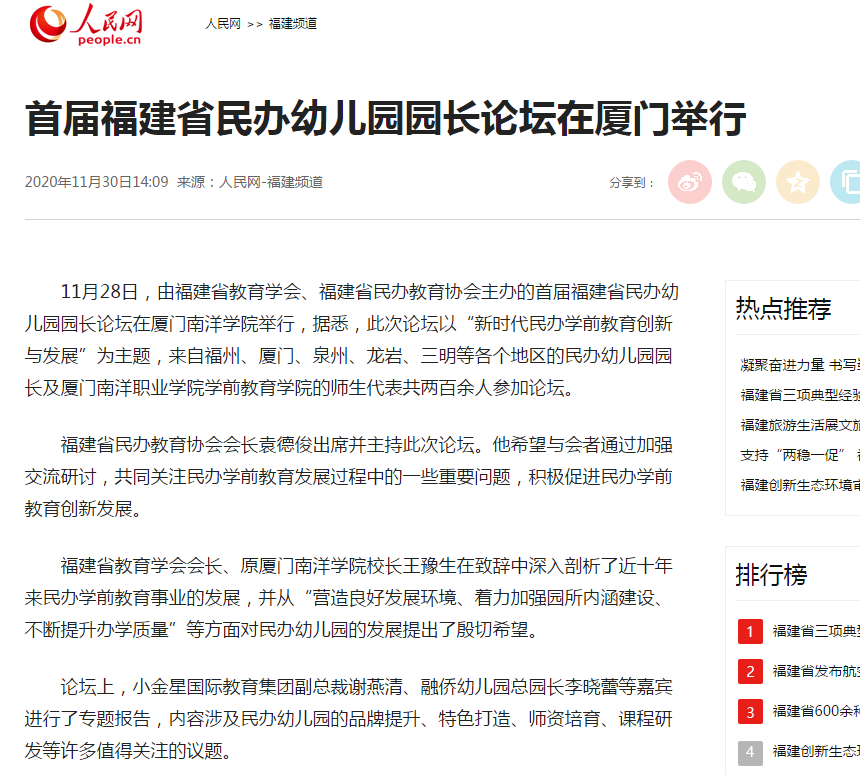 人民网:首届福建省民办幼儿园园长论坛在厦门举行