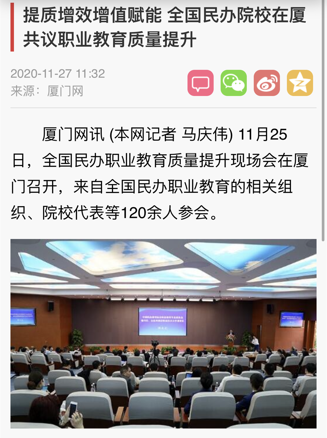 厦门网:提质增效增值赋能 全国民办院校在厦共议职业教育质量提升