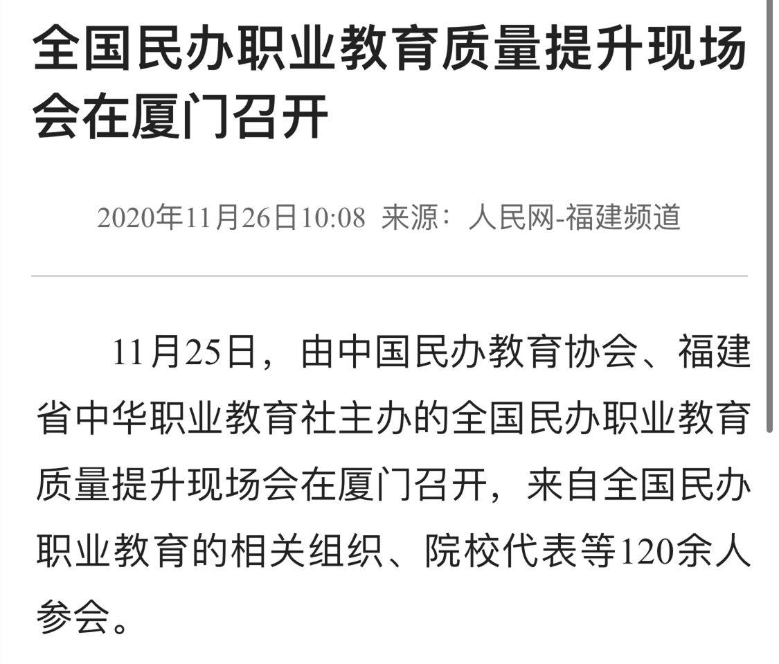 人民网:全国民办职业教育质量提升现场会在厦门召开