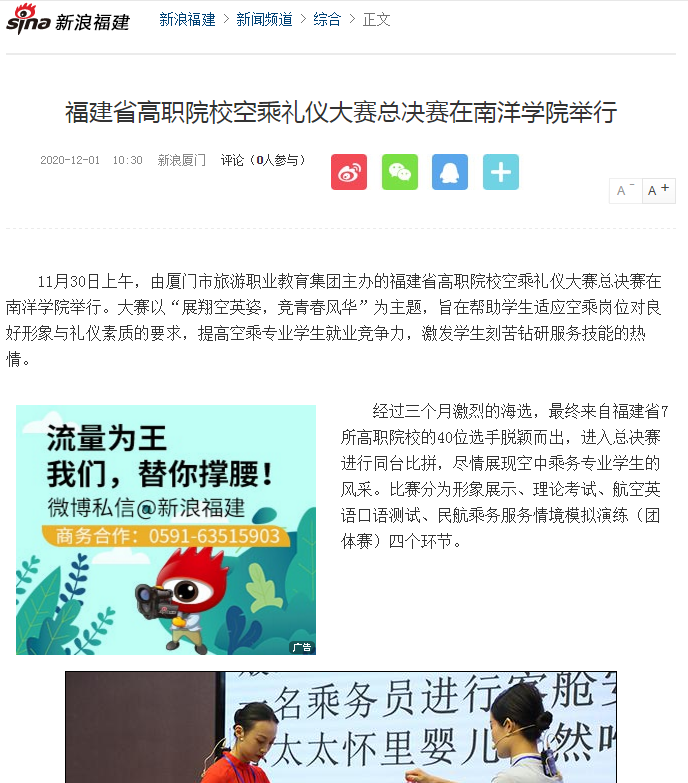 新浪网:福建省高职院校空乘礼仪大赛总决赛在南洋学院举行