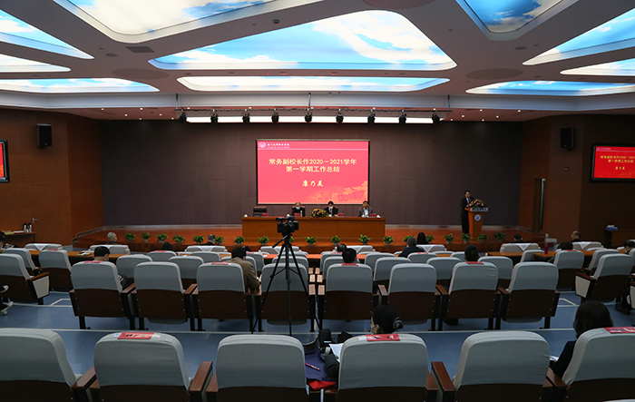 康乃美副校长从以下九个方面回顾总结了本学期工作:一是做好疫情常态化工作;二是职教政策贯彻落实;三是科研成果卓有成效;四是队伍建设引向深入;五是学生工作扎实推进;六是党建成效更加彰显;七是校园建设踏实推进;八是社会服务多元拓展;九是校庆活动圆满落幕。同时部署了今年的主要工作和任务:坚持做好疫情防控常态化工作,全力做好学校“十四五”规划编制工作,隆重庆祝中国共产党成立100周年,积极推动学校内涵发展,努力打赢升本建设和试点申报攻坚战。