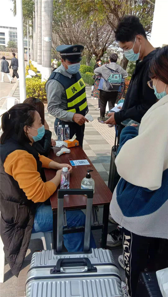今日(3月9日),我校首批学生到校。南大门和西大门均设置体温检测区域,全体教职工与志愿工作者分工明确、早已就位。他们按照返校流程,测温、登记、检查健康码等直至学生入住宿舍,整个过程流畅快捷、秩序井然。返校学子按要求佩戴口罩,有序间隔排队入校。他们精神面貌积极良好,脸上洋溢着对新学期的期待与兴奋。他们安全到校后,属于他们的新征程也正式开启。