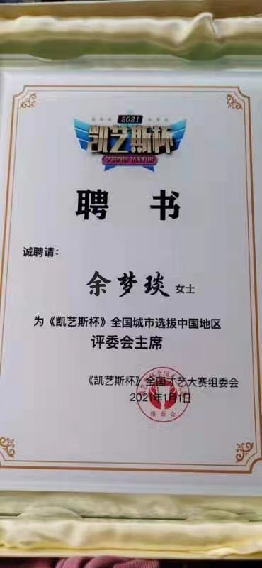 此次应邀成为“凯艺斯杯”全国才艺大赛评委会主席,余梦琰表示,她将用自己的专业和经历,助力更多同样拥有艺术梦想的青年人才通过大赛的平台大胆追梦,让每一个梦想在舞台上发光。