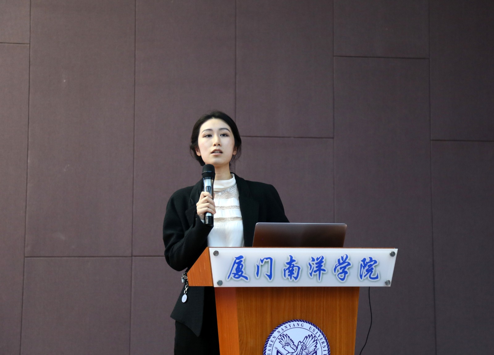 来自工商企业管理专业教研室的冯蓓蓓老师,在法国本硕连读5年,硕士期间先后在法国巴黎第一大学、法国行政与管理预备学院修读企业商务管理、国际战略与谈判专业,她宣扬法国自由、平等、博爱的教育理念和时时处处读书的文化。她从教学方式切入,对比分析填鸭式教学与互动式教学对学生的影响,并以自己在抗“疫”期间线上教学为例,分享自己如何践行以学生为中心的教学改革,要制造课堂教学的神秘感,制造课堂教学的趣味感,让学生体会成功感。