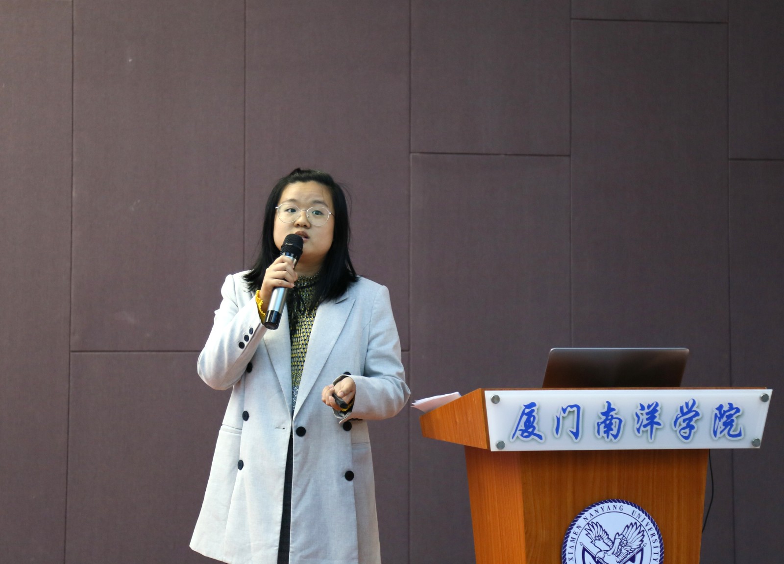 学前教育学院林丹老师作最后分享,她同样留学法国,毕业于法国戛纳省级音乐与戏剧学院,主修视唱练耳。她介绍了法国独具特色的学校类型,她认为中国的教育更显公平,就两国音乐实践课和理论课差异进行梳理,法国课程更偏向复合型,注重学生综合素养和逻辑分析的培养,她尝试将自己从国外习得的先进理念应用于实际教学中,引导学生学会思考、学会分析。