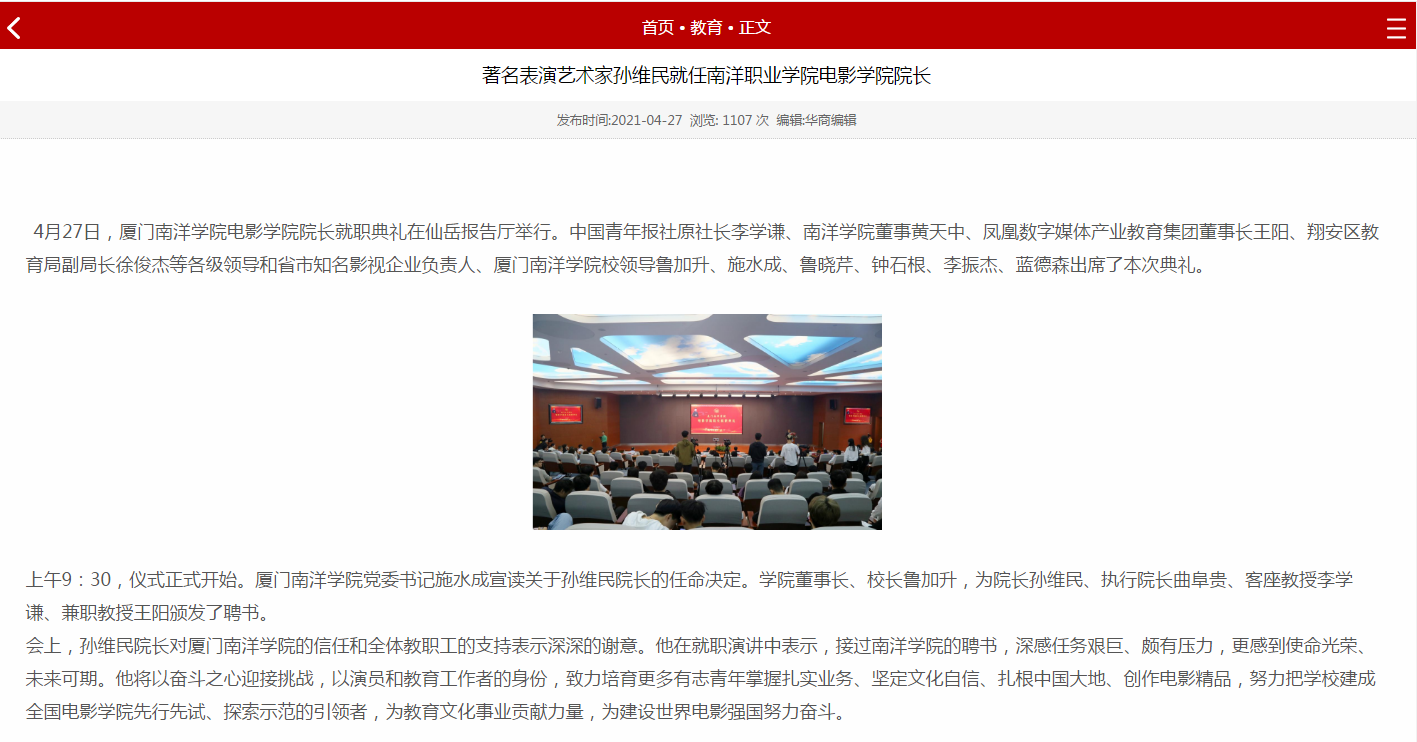 华商编辑:著名表演艺术家孙维民就任南洋职业学院电影学院院长