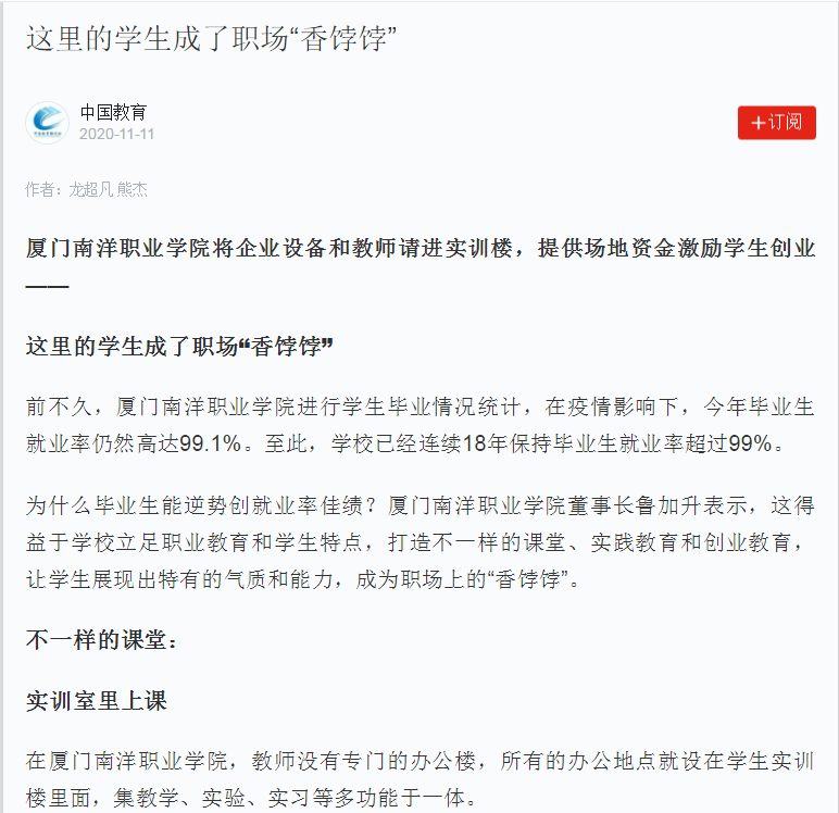 前不久,一直在“电信部门南洋勤工助学基地”实习的几名应届毕业生,提前被电信公司相中签约了。来招人的部门经理坦言:“我们看中的就是学生身上的踏实劲儿,工作态度认真。”