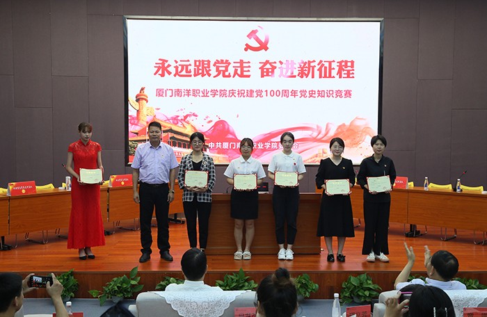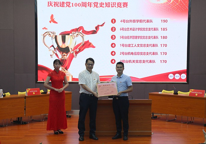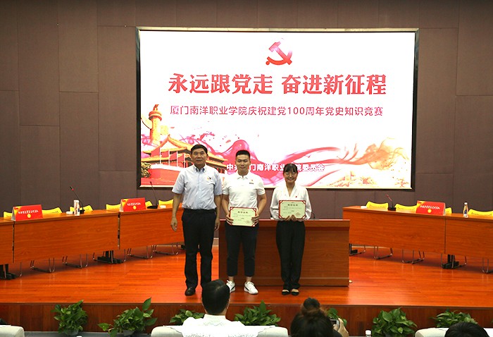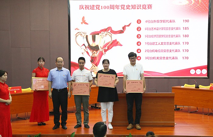 活动结束后,施水成书记对比赛进行了点评。他首先对本次比赛的成功举办表示了充分的肯定,认为这次竞赛准备充分、形式新颖、气氛活跃。通过知识竞赛活动,重温党的历史、牢记历史使命,加深了全校师生党员对党史的学习理解和消化吸收,达到推进党史学习教育活动走深走实的良好效果。同时,进一步培养师生的团结精神和竞争意识,不断增强团队凝聚力和向心力。他指出,党史学习教育应是日积月累、由浅入深的过程,全体师生党员一定要全面系统学、联系实际学,既要学史明理、学史增信、学史崇德、学史力行,也要持之以恒努力弘扬中国共产党人开天辟地、敢为人先的首创精神,坚定理想、不折不挠的奋斗精神,立党为公、忠诚为民的奉献精神,从党史学习中汲取智慧和力量,并将其转化为“与祖国共奋进、与学校同发展”的鲜活源泉,为南洋的健康发展、科学发展、和谐发展贡献智慧和力量。