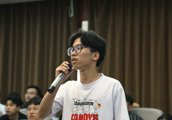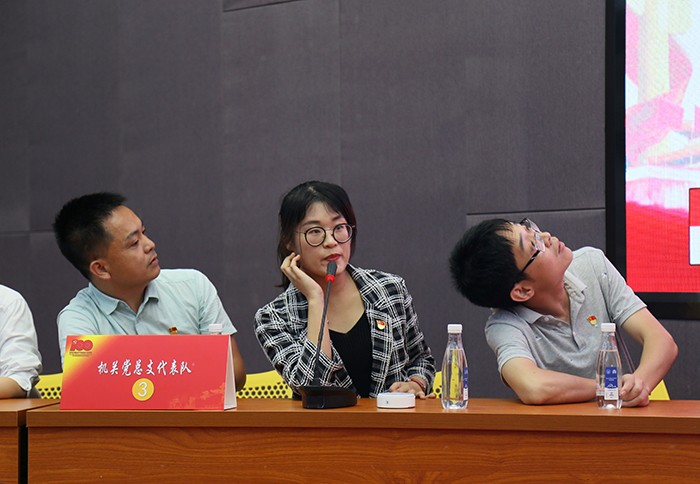 “今天参加党史知识竞赛收获满满、惊喜连连,题目形式多样,竞答方式也是别开生面,非常有趣。”参赛选手黄君宜说。本次比赛精心设计“个人必答题”“团队必答题”“抢答题”和“风险题”四个环节,集知识性、趣味性、互动性于一体。尤其是在“团队必答题”环节,答题人由场上选手变为了场下观众,通过摇号的形式,抽取现场观众进行答题。观众们的心随着摇号系统的运行,不禁的“咯噔”一下,台上的硝烟弥漫与台下的紧张兴奋和谐的充斥了整个比赛现场。