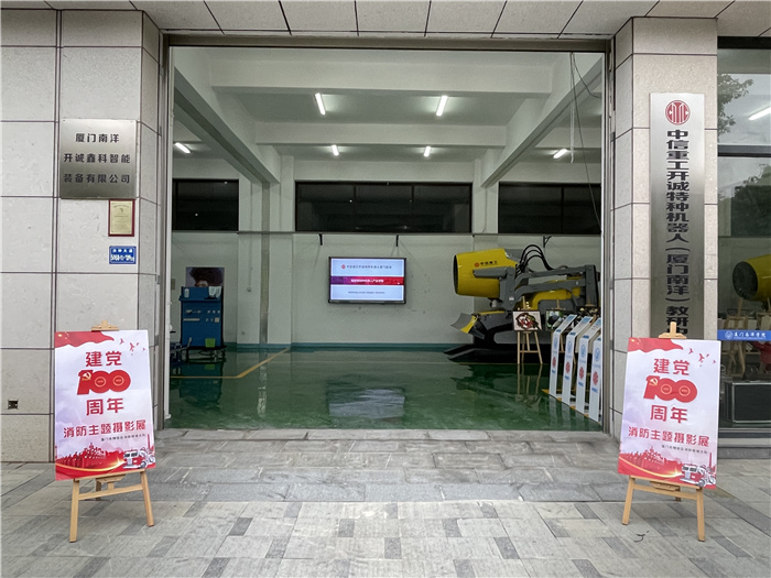 为迎接和庆祝中国共产党建党一百周年华诞,展现中华民族实现伟大复兴的奋斗历程,宣传消防灭火安全,昨天厦门翔安消防队与南洋特种机器人车间共同举办建党100周年消防主题摄影展。