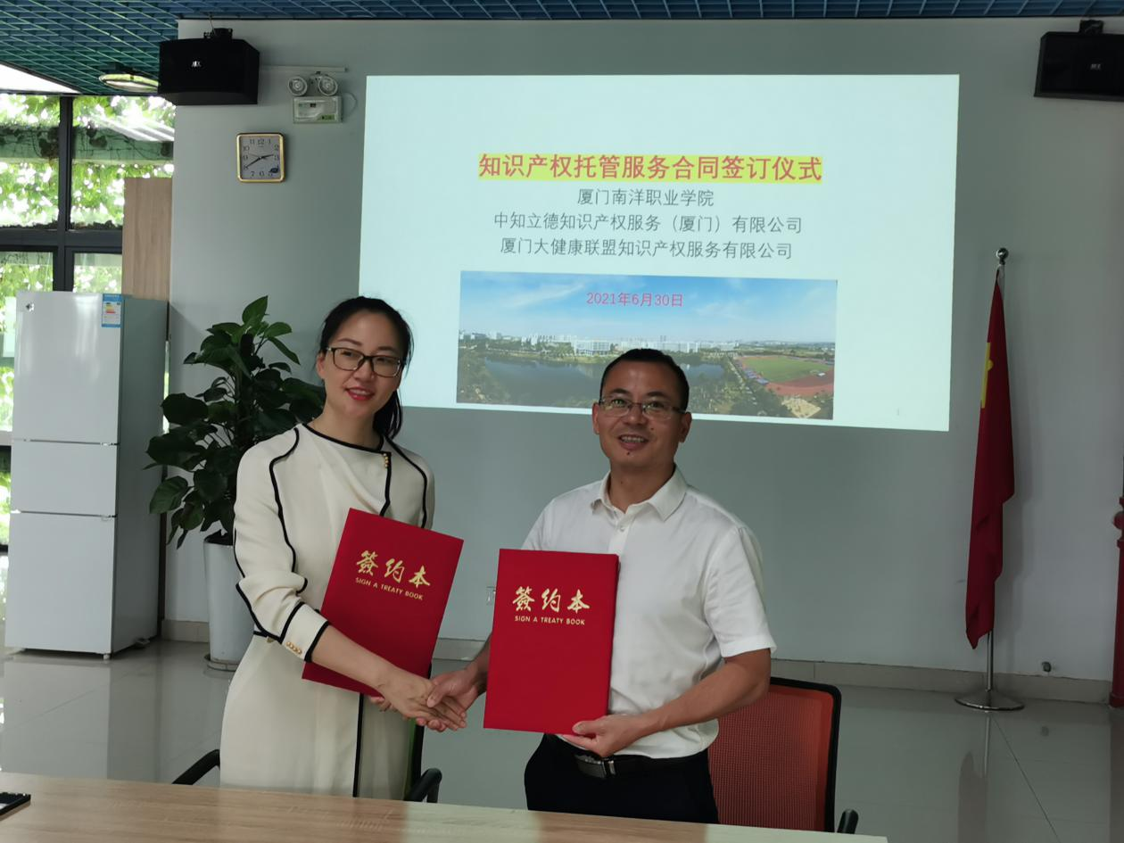 6月30日下午,我校在教师发展中心举行知识产权托管服务合同签订仪式。副校长钟石根代表我校与中知立德知识产权服务(厦门)有限公司、厦门大健康联盟知识产权服务有限公司签署了知识产权托管服务合同。我校科研处处长阎希柱、科研处处长助理王志强及教育科学研究院副院长雷志忠等共同见证本次签约仪式。