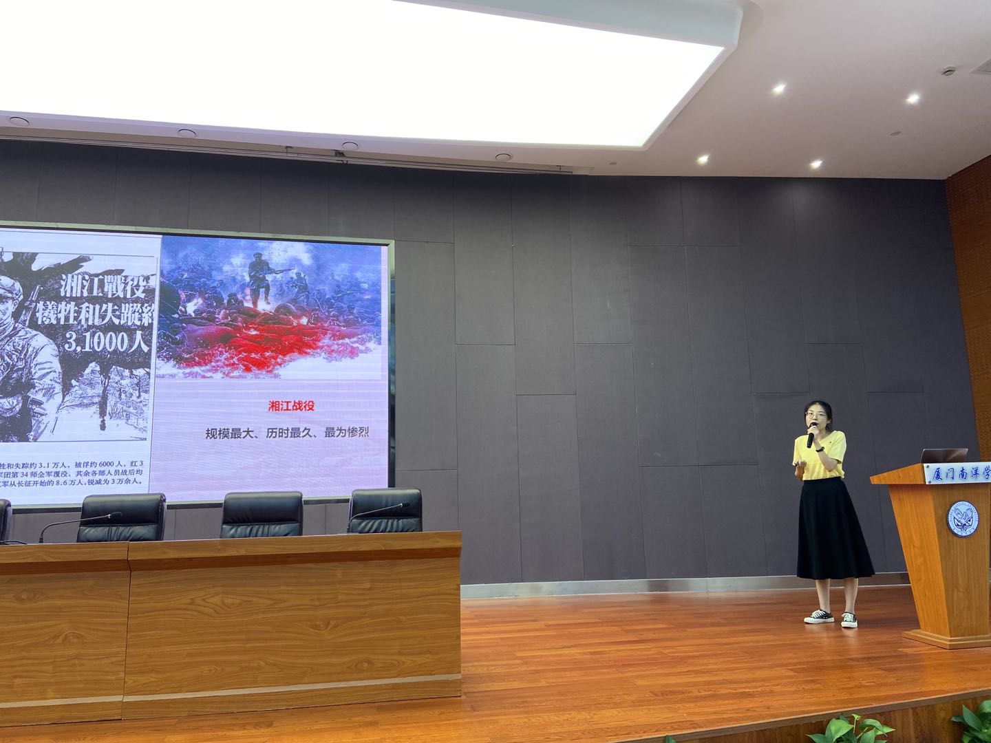 邢尕燕老师从长征精神出发,讲述了英雄烈士陈树湘同志的故事。通过长征路上红军遇到艰难险阻也不退缩的长征精神,告诉我们新时代要牢记长征精神,坚定理想信念、不畏困苦、独立自主、严守纪律,共同奋斗走好新时代的长征路,实现中国梦、强军梦。