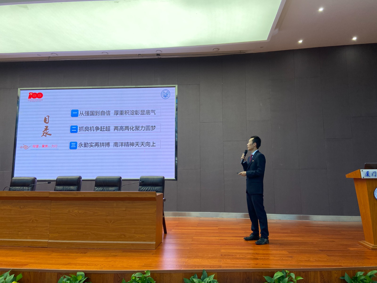 陈朝老师由远及近讲述了支撑祖国强大自信的文化底蕴,厚重积淀彰显底气。他展现一幅幅传统作品,宣扬传统基因,坚定文化自信,鼓舞人心。他以“勤奋求实,拼搏向上”的南洋精神为引,愿南洋人文共创品牌、树标杆,共建文化大校、强校、百年名校。