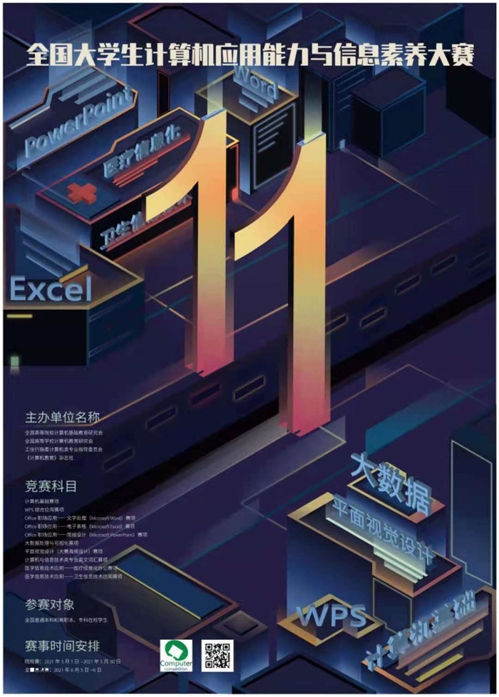 第十一届全国大学生计算机应用能力与信息素养大赛是由全国高等院校计算机基础教育研究会、全国高等学校计算机教育研究会、工信行指委计算机类专业教学指导委员会、《计算机教育》杂志社共同主办。经过十一届的赛事举办,大赛已成为国内规模最大的面向高等院校各专业领域学生的计算机应用技能大赛之一。