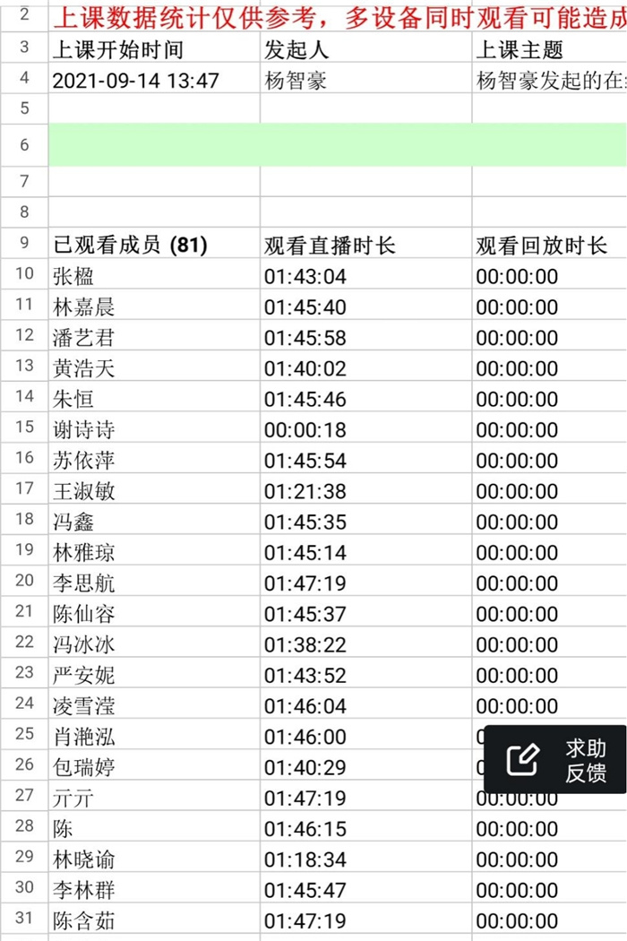 找到学习数据(直播观看时间、课堂活动参与情况)异常的同学单独了解情况。