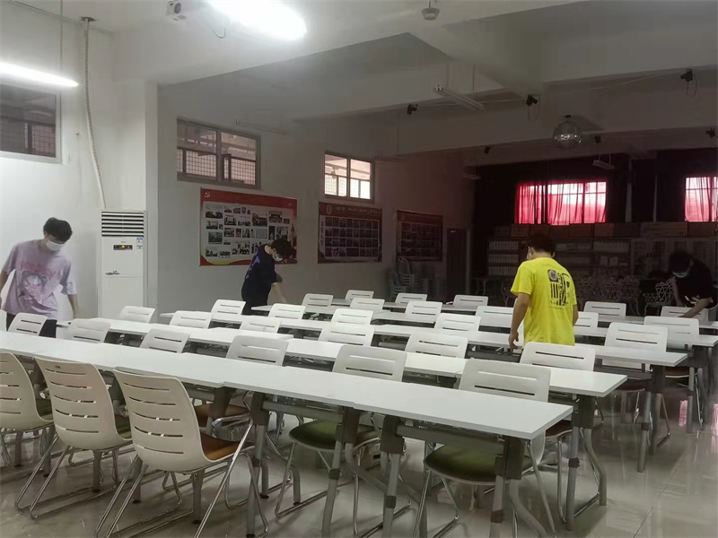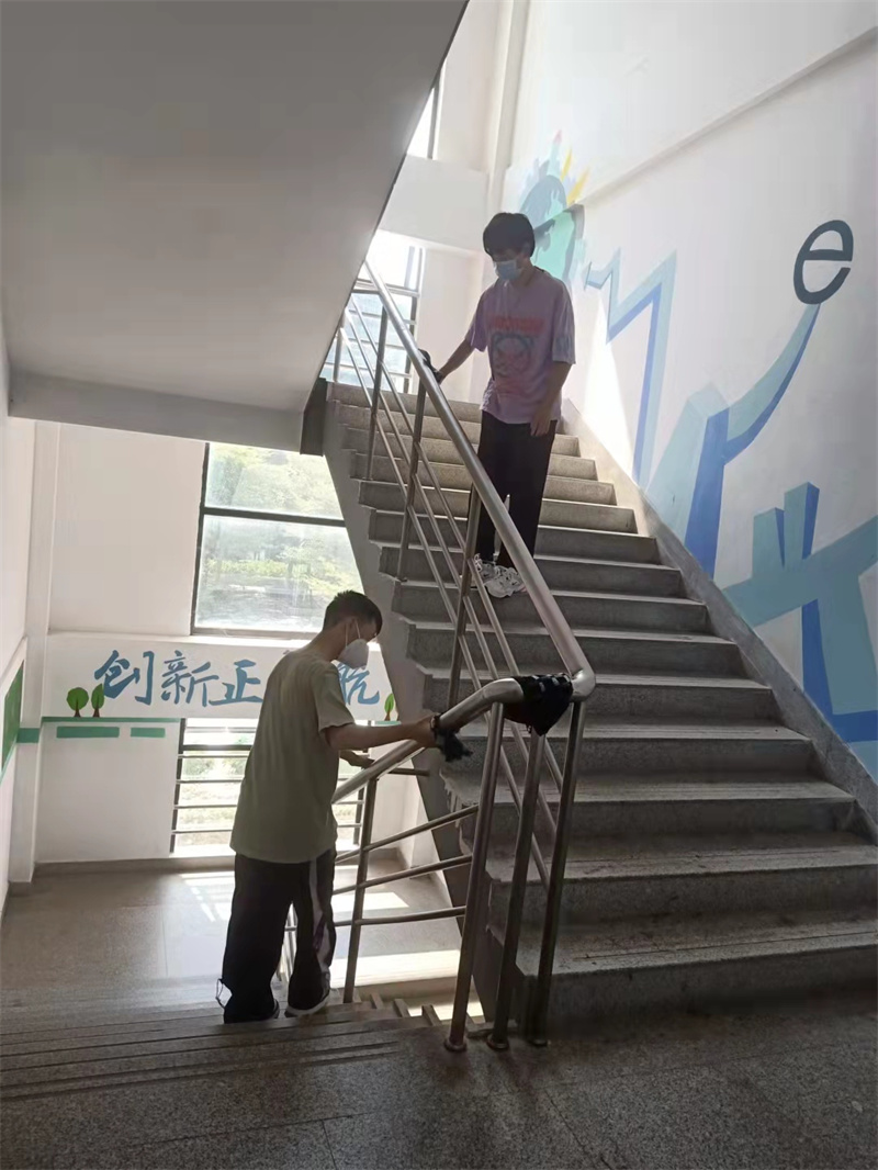 劳动过程中,人人争先、个个动手,不怕脏、不怕累。撸起袖子加油干,扫地、拖地、擦窗户、整理桌面文件,连电脑键盘也不放过。脸上流淌着的汗水,是为抗疫加油的见证。