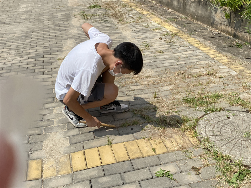 全校师生齐上阵,大家戴好口罩,分工有序,挥舞着手中的扫把、抹布,在各自的文明责任区大展身手,不管是看得见的垃圾、还是犄角旮旯里的灰,都认真地进行打扫、消毒、清理。遇到一些工具难以清理的死角,大家就蹲下来,将路边死角零星的垃圾用手捡拾起来。