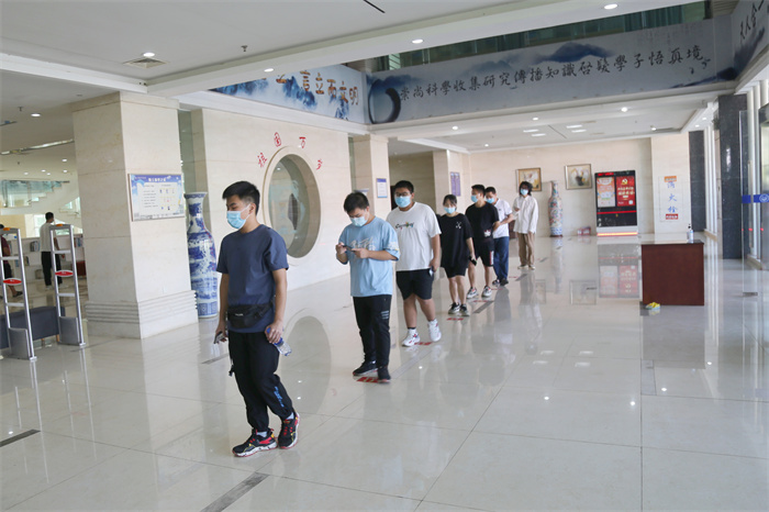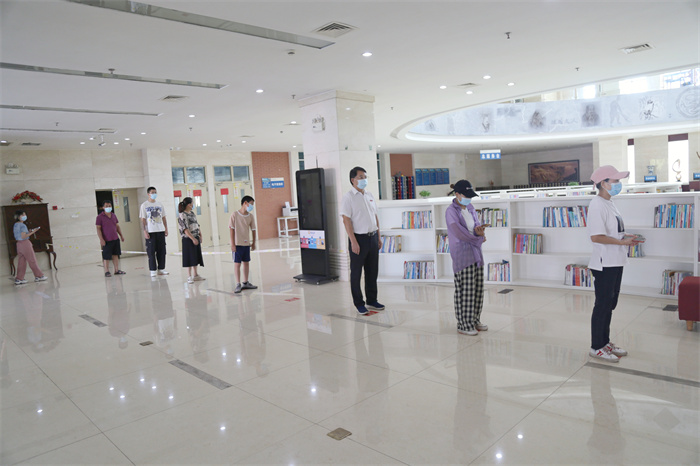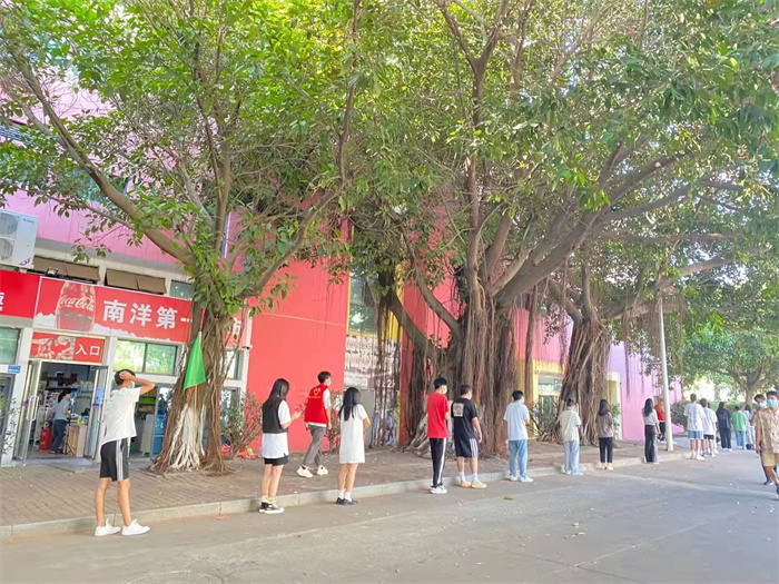 我校共有8114名师生参加核酸检测,检测时佩戴口罩,有序排队,不聚集,与他人保持一米距离。