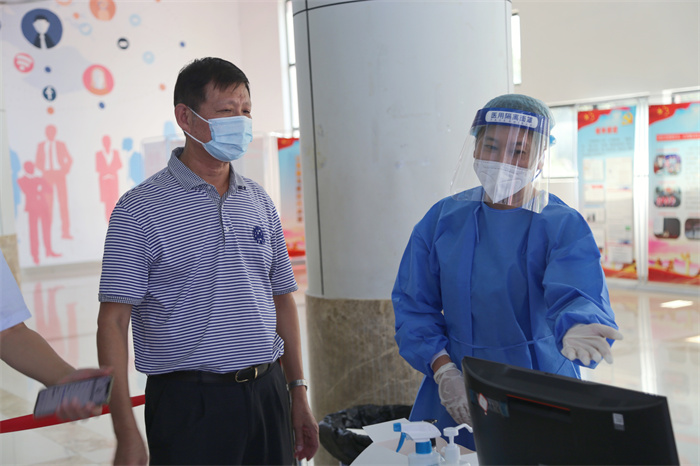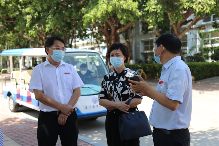 厦门市教育纪检监察工作委员会书记张国兴等有关领导现场检查指导防疫、食品安全、核酸检测等工作,并送上防疫物资的“爱心包”。张书记强调当前疫情防控形势依然严峻,学校要进一步明确目标,进一步认清形势,进一步高度重视,进一步抓好落实,努力为全市疫情防控工作做出贡献。