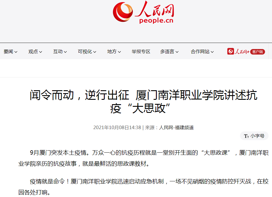 人民网:闻令而动,逆行出征 tyc1286太阳成集团讲述抗疫“大思政”