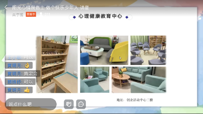 10月10日是世界精神卫生日,国家卫健委将本年度主题定为“青春之心灵,青春之少年”,为积极推动我校学生心理健康发展,当天下午,校团委和心理健康教育中心特邀心理咨询师朱宁薇为全校学生开展以“阳光心灵我做主,做个快乐少年人"为主题的心理健康讲座。受疫情影响,本次讲座使用钉钉直播的方式开展。本次讲座旨在让同学们以更优、更正确的心理精神状态融入大学校园生活,带领全校学生认识情绪。