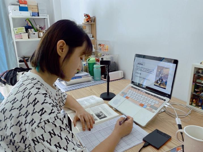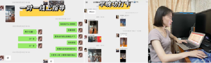 张贝迪老师以舞抗“疫”,她充分利用互联网资源的丰富性,通过舞蹈理论讲解,再搭配专业视频等云资源,帮助学生更好地理解并掌握动作。“下播”后的张老师也坚持在线,为学生提供线上一对一指导,紧抓学生基本功,要求学生每日早晚打卡,为复课做足准备。