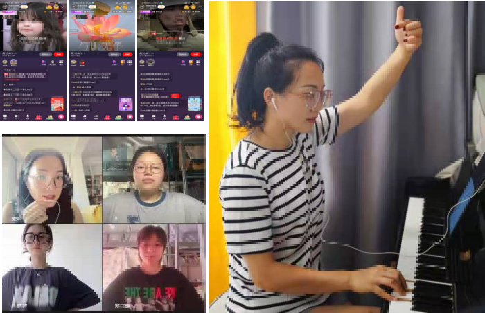 王瑞老师任教的《声乐》《声乐基础课》,课程注重声音的实践性,王老师采用“腾讯课堂+全民K歌练歌房”组合的方式授课。“老师弹奏着简单的练声曲,同学们练习发声,师生K歌,一起处理声乐作品”,使得线上课程变得有趣又生动,活跃又温馨。