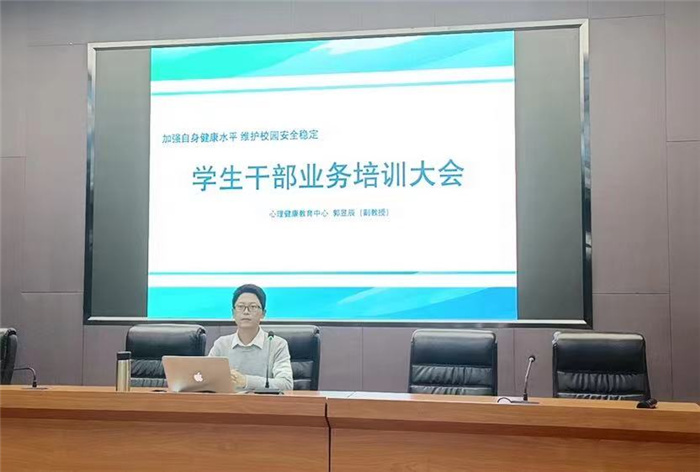 为提升我校学生干部整体健康水平和应对心理危机事件的胜任力,维护校园的安全和稳定,昨天上午,学校心理健康中心郭昱辰老师应邀在仙岳报告厅做《加强自身健康水平 维护校园安全稳定》专题培训。校长助理蓝德森及相关部门负责人出席。