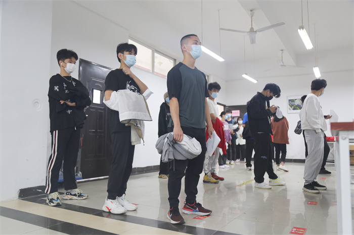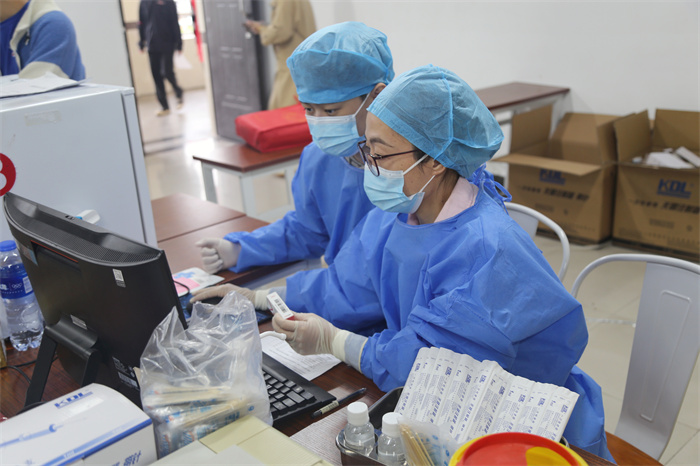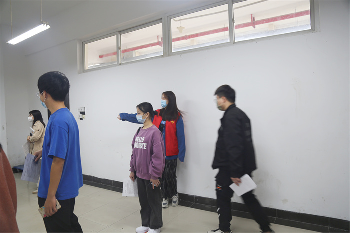 医务人员逐个对教职工及学生进行健康询问,